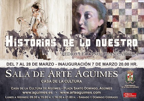 La Sala de Arte Agüimes, ubicada en la segunda planta de la Casa de la Cultura de Agüimes, acoge la exposición "Historias de lo nuestro", de los artistas canarios Pedro Lezcano y Juan Cabrera, que permanecerá abierta al público hasta el día 28 de marzo, pudiendo ser visitada en horario de 09.00 a 15.00 horas y del 16.00 a 21.00 horas.